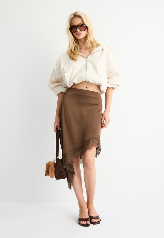 Stradivarius Blouson Basique Nylon Capuche Écru L