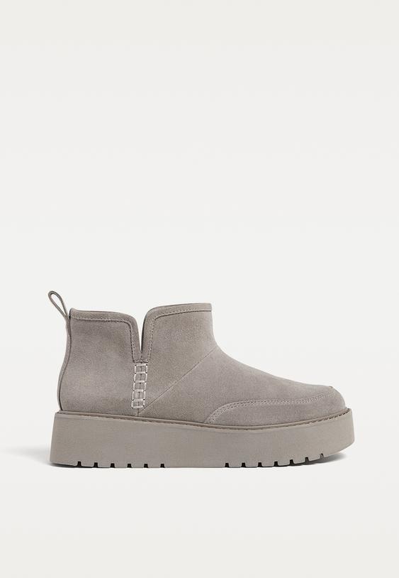 - Botines grises planos: comodidad todo el día para un look urbano y casual.