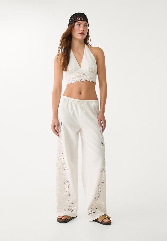 pantalon straight bordados con lino