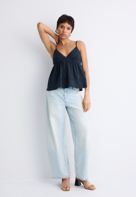 Para un look minimalista, elige blancos, negros y tonos nude; para aportar energía, viste con colores vivos o pasteles. Las camisetas con escote en V en punto fino o viscosa ofrecen caída elegante, mientras que el algodón puro aporta comodidad y transpirabilidad. En Stradivarius España encontrarás mezclas suaves como algodón-viscosa para un equilibrio entre estructura y fluidez. En cuanto a texturas, las rayas sutiles, los estampados discretos o los toques gráficos pueden dar personalidad sin sobrecargar el outfit. Las terminaciones, costuras limpias y dobladillos bien rematados aseguran durabilidad para el día a día.