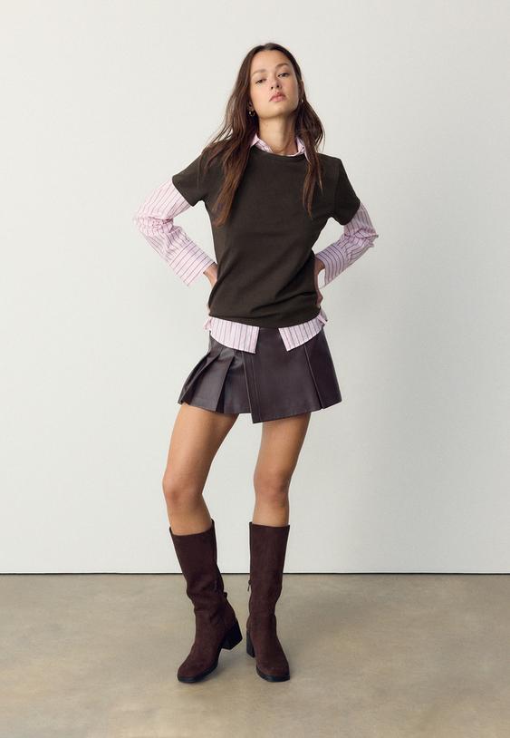 En Stradivarius encontrarás camisetas marrones cortas en diferentes acabados para que puedas crear looks con distintos fines: desde una base minimalista hasta prendas con pequeños detalles que elevan el conjunto. A continuación, una guía de modelos que suelen estar disponibles en las colecciones de temporada: