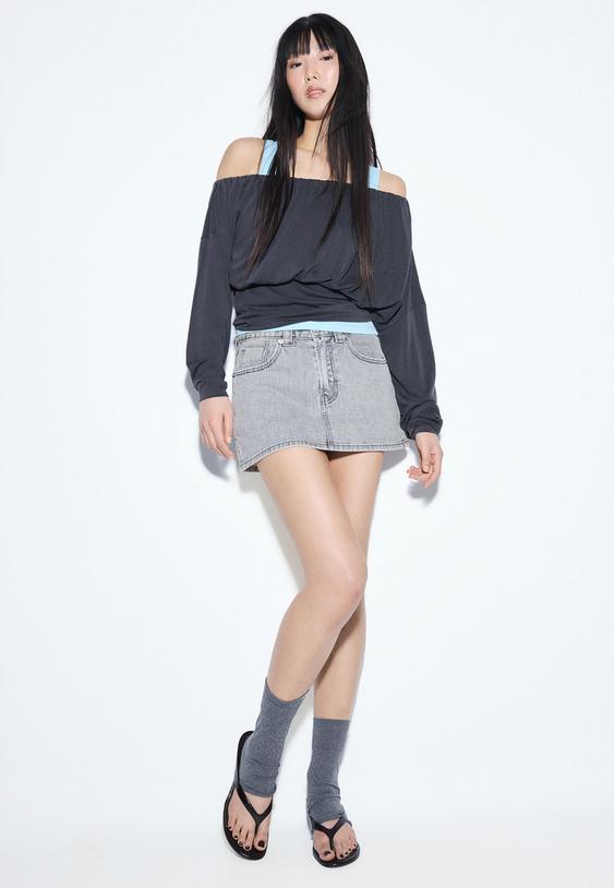 - Falda denim gris: casual y versátil, perfecta para looks de diario.