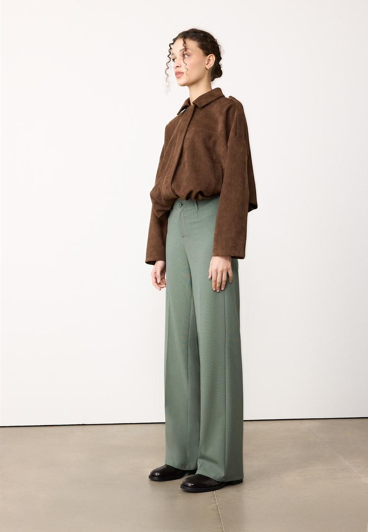 - Pantalones con cintura alta y pliegues discretos para un look elegante y cómodo.
