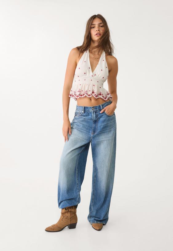 + Colorestop halter bordado contraste