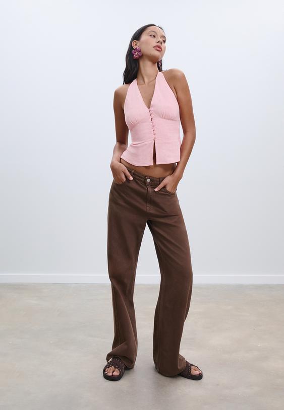 halter neck button up top with linen effect