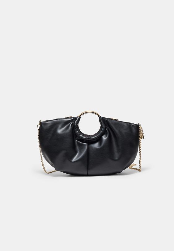 Stradivarius Shoulder Bag With Metallic Handle Black Os