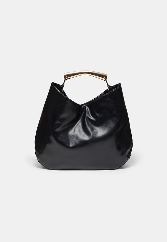 Stradivarius Tote Bag With Metallic Handle Black Os