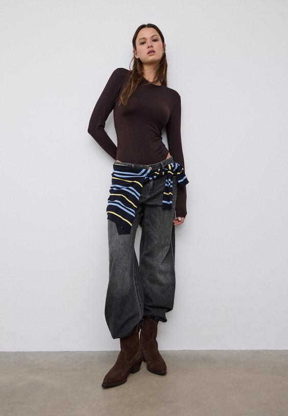 Stradivarius Asymmetrical Neckline Top Brown L