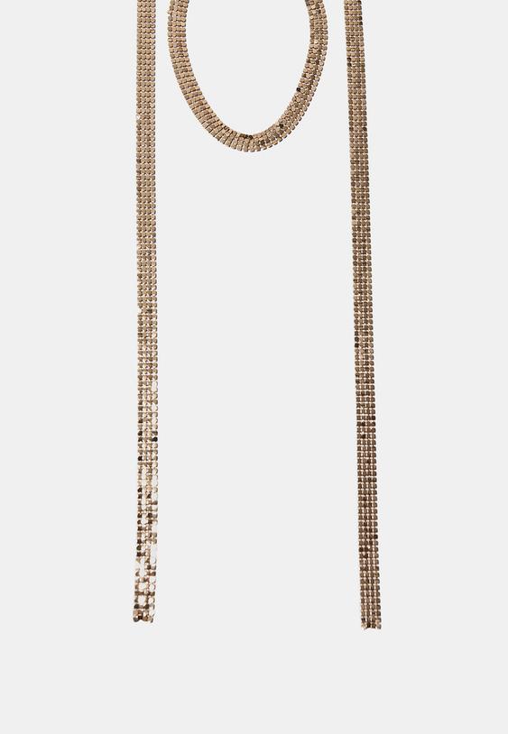 Stradivarius Long Mesh Lariat Necklace Gold Os