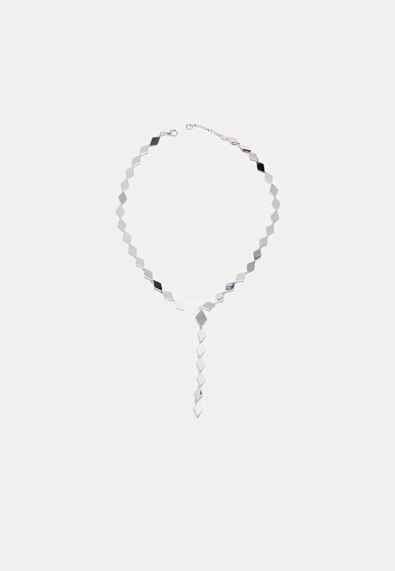 Stradivarius Diamond Effect Crystal Lariat Necklace Grey Os