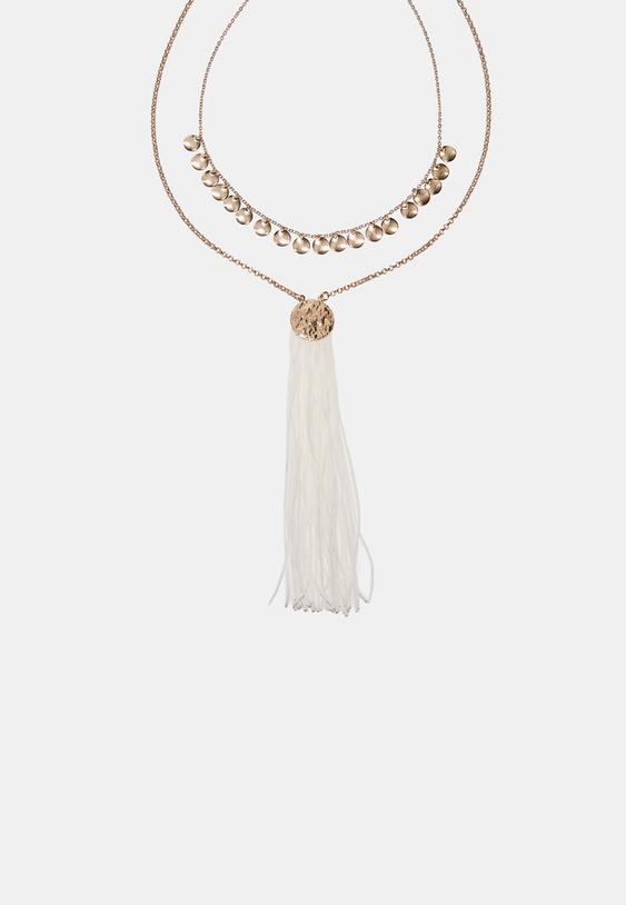 Stradivarius Set Of 2 Fringe Charm Necklaces Gold Os