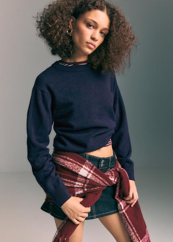Stradivarius Soft-Touch Basic Knitted Jumper Navy Blue S