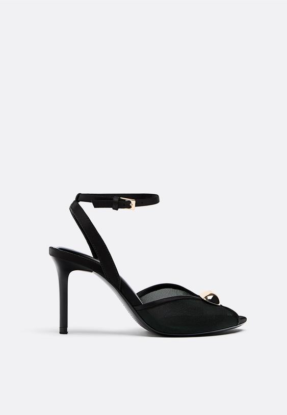 Stradivarius Heeled Mesh Sandals With Metal Detailing Black 7