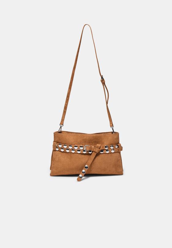 Stradivarius Crossbody Belt Bag With Studs Pale Camel Os